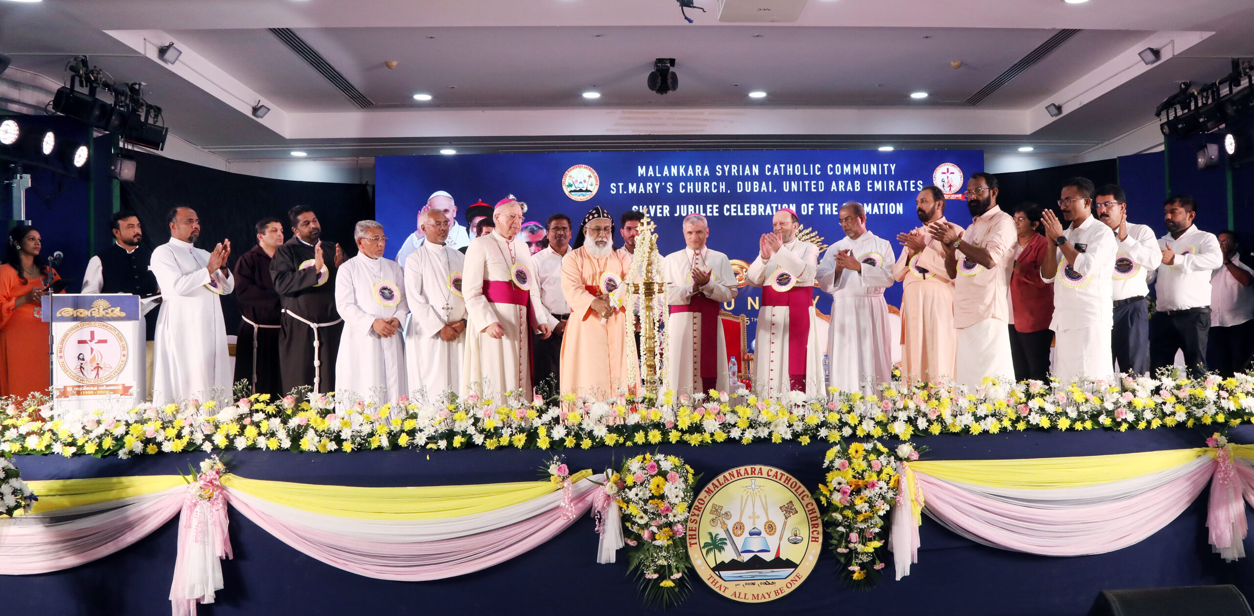 ദുബായ് മലങ്കര സുറിയാനി കത്തോലിക്കാ സഭാ സമൂഹരൂപീകരണത്തിന്റെ രജത ജൂബിലി ആഘോഷിച്ചു. നവംബർ 5 ഞായറാഴ്ച ഉച്ചയ്ക്ക് മലങ്കര സുറിയാനി കത്തോലിക്കാ സഭയുടെ അദ്ധ്യക്ഷൻ കർദ്ദിനാൾ ബസേലിയോസ് ക്ളീമീസ് കാതോലിക്കാ ബാവായുടെ മുഖ്യകാർമികത്വത്തിൽ ദുബായ് സെയിന്റ് മേരീസ് ദേവാലയത്തിൽ ആഘോഷമായ സമൂഹബലി നടത്തി. ദേവാലയ അങ്കണത്തിൽ അത്യഭിവന്ദ്യ കാതോലിക്കാ ബാവ, പരിശുദ്ധ ഫ്രാൻസിസ് മാർപ്പാപ്പയുടെ യു എ യിലെ പ്രതിനിധി ആർച്ച്ബിഷപ്പ് ക്രിസ്റ്റഫേ സാക്കിയ എൽ-കാസിസ്, ബിഷപ്പ് പൗളോ മാർട്ടിനെല്ലി, ബിഷപ്പ് പോൾ ഹിൻഡർ, ബഹുമാനപ്പെട്ട വൈദീകർക്കും പള്ളി അങ്കണത്തിൽ സ്വീകരണം നൽകി.