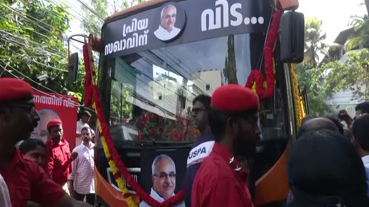 ഇന്നലെ ഉച്ചയോടെ തിരുവനന്തപുരത്ത് നിന്ന് കാനത്തിന്റെ മൃതശരീരവുമായി പുറപ്പെട്ട വിലാപയാത്ര ആയിരകണക്കിന് പ്രവർത്തകരുടെ അന്ത്യാഞ്ജലി ഏറ്റുവാങ്ങി ഇന്ന് പുലര്ച്ചെ മൂന്ന് മണിയോടെയാണ് കാനത്തെ വീട്ടിലെത്തിയത്. വിലാപയാത്ര കടന്നുപോയ സ്ഥലങ്ങളിലെല്ലാം ആളുകള് തിങ്ങിനിറഞ്ഞതോടെ നേരത്തെ നിശ്ചയിച്ചിരുന്നതിലും വളരെ വൈകിയാണ് എത്തിയത്. പുലര്ച്ചെ ഒന്നിന് കോട്ടയം സിപിഐ ജില്ലാ കമ്മിറ്റി ഓഫീസിലെ പൊതുദര്ശനത്തിനുശേഷമാണ് ഭൗതിക ശരീരം വീട്ടിലേക്ക് കൊണ്ടുവന്നത്. രാത്രി വൈകിയും എംസി റോഡിൽ പ്രധാന ജംഗ്ഷനുകളിൽ എല്ലാം കാനത്തിന് അന്ത്യാഞ്ജലി അർപ്പിക്കാൻ പാർട്ടി പ്രവർത്തകരും നാട്ടുകാരുമെത്തി.
