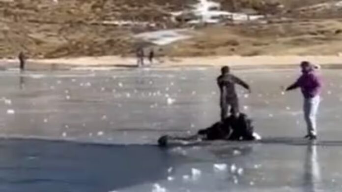 അരുണാചൽ പ്രദേശിലെ തവാങ്ങിൽ വിനോദയാത്രയ്ക്കെത്തിയ രണ്ട് മലയാളികൾ മുങ്ങിമരിച്ചു. കൊല്ലം സ്വദേശി ദിനു (26) വിന്റെ മൃദദേഹം കണ്ടെത്തി. കൂടെയുണ്ടായിരുന്ന മാധവ് മഹാദേവിന്റെ (24) മൃദദേഹത്തിനായി തടാകത്തിൽ തിരച്ചിൽ തുടരുകയാണ്. ഗുവാഹത്തി വഴി തവാങ്ങിൽ എത്തിയ ഏഴ് അംഗ വിനോദസഞ്ചാര സംഘത്തിലെ അംഗങ്ങളായിരുന്നു ഇവരെന്ന് പോലീസ് സൂപ്രണ്ട് ഡിഡബ്ല്യു തോംഗോൺ പറഞ്ഞു. തണുത്തുറഞ്ഞ സേല തടാകത്തിന് മുകളിലൂടെ നടക്കാൻ ശ്രമിക്കുന്നതിനിടെയാണ് അപകടം സംഭവിച്ചത്. മഞ്ഞുപാളി തകർന്ന് തടാകത്തിൽ വീണ സംഘാംഗത്തെ രക്ഷിക്കാൻ ശ്രമിക്കുന്നതിനിടെ ദിനുവും മാധവും വെള്ളത്തിൽ വീഴുകയായിരുന്നു. വീണയാൾ സുരക്ഷിതമായി പുറത്തുവന്നെങ്കിലും മറ്റു രണ്ടു പേർ മഞ്ഞുകട്ടകൾക്കിടയിലെ തണുത്ത വെള്ളത്തിനടിയിലേക്ക് ഒലിച്ചു പോവുകയായിരുന്നുവെന്ന് എസ്.പി പറഞ്ഞു. ഇന്നലെ വൈകിട്ട് മൂന്ന് മണിയോടെ നടന്ന അപകടത്തിൽ മറ്റ് അഞ്ചുപേരെ രക്ഷപ്പെടുത്തി.