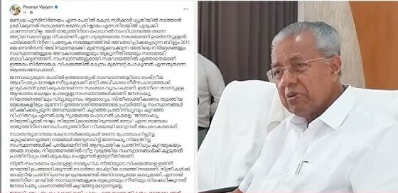 കേന്ദ്ര സർക്കാർ കൊണ്ടുവരുന്ന മണ്ഡല പുനർനിർണ്ണയ നീക്കം രാജ്യത്തിൻ്റെ ഫെഡറൽ സംവിധാനത്തെ തകർക്കുന്നതാണെന്ന് മുഖ്യമന്ത്രി പിണറായി വിജയൻ. കേരളം പോലുള്ള സംസ്ഥാനങ്ങളെ ഈ നീക്കം ദോഷകരമായി ബാധിക്കുമെന്നും സംസ്ഥാനങ്ങളുടെ അവകാശങ്ങളെയും തുല്യനീതി എന്ന തത്വത്തെയും അട്ടിമറിക്കുന്നതാണ് പുതിയ ബില്ലെന്നും അദ്ദേഹം പ്രസ്താവനയിൽ പറഞ്ഞു. പാർലമെന്റിന്റെ പ്രത്യേക സമ്മേളനത്തിൽ അവതരിപ്പിക്കാനിരിക്കുന്ന ബില്ലിനെതിരെ ശക്തമായ പ്രതിഷേധമാണ് അദ്ദേഹം രേഖപ്പെടുത്തിയത്.