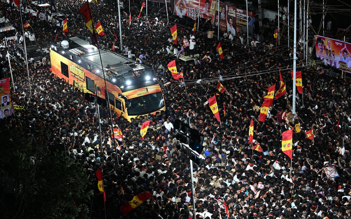 അതേസമയം, മുൻകൂർ ജാമ്യപേക്ഷ ഹൈക്കോടതി തള്ളിയ സാഹചര്യത്തിൽ ടി വി കെ ജനറൽ സെക്രട്ടറി എൻ ആനന്ദ്, ജോയിന്റ് സെക്രട്ടറി സി ടി നിർമൽ കുമാർ എന്നിവരെ അറസ്റ്റ് ചെയ്തേക്കും. ഇവർ പൊലീസ് നിരീക്ഷണത്തിൽ ആണ്. പൊലീസിനെതിരെ വിമർശനം ഉണ്ടായെങ്കിലും കോടതി പരാമർശങ്ങളിൽ നേട്ടമുണ്ടായി എന്ന വിലയിരുത്തലിൽ ആണ് ഡിഎംകെ.